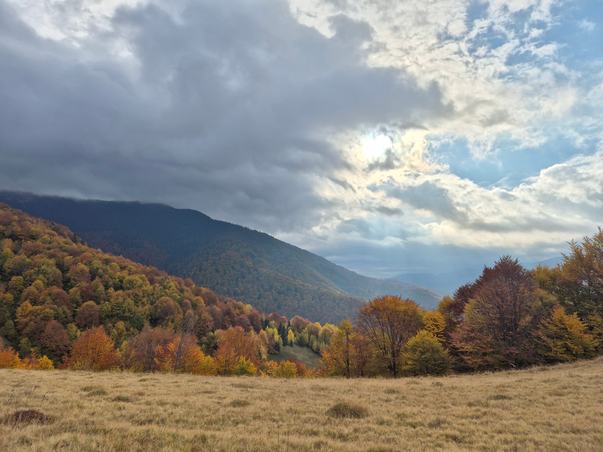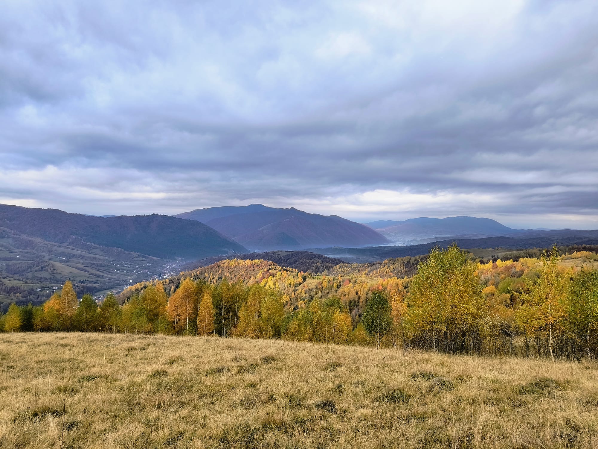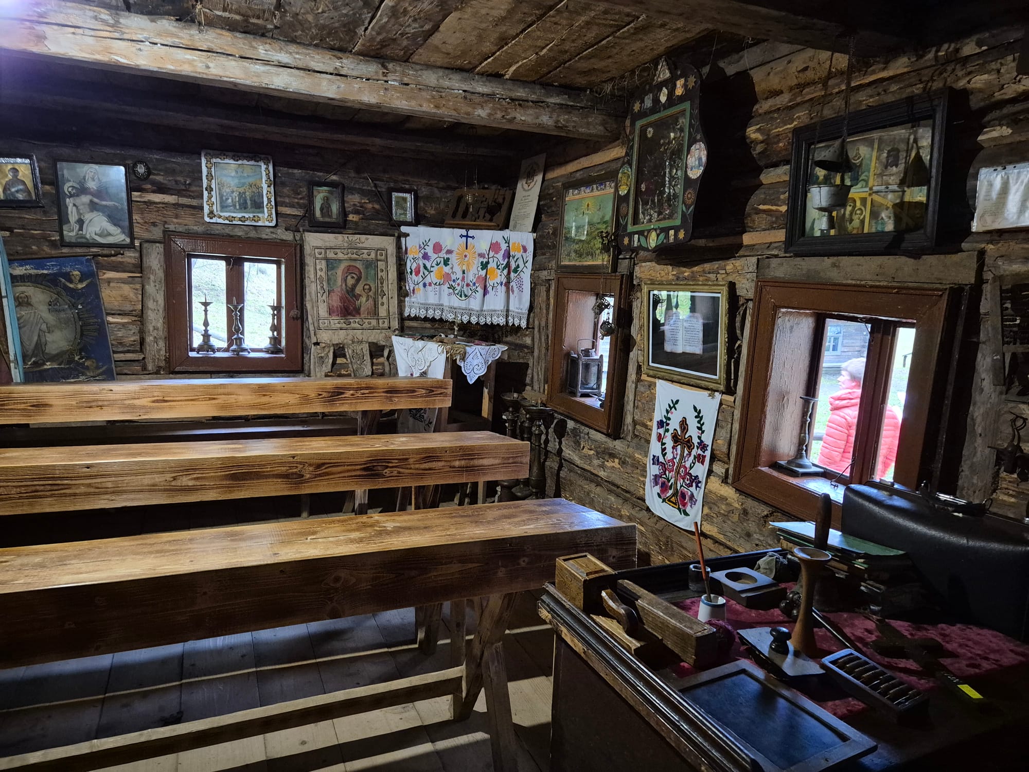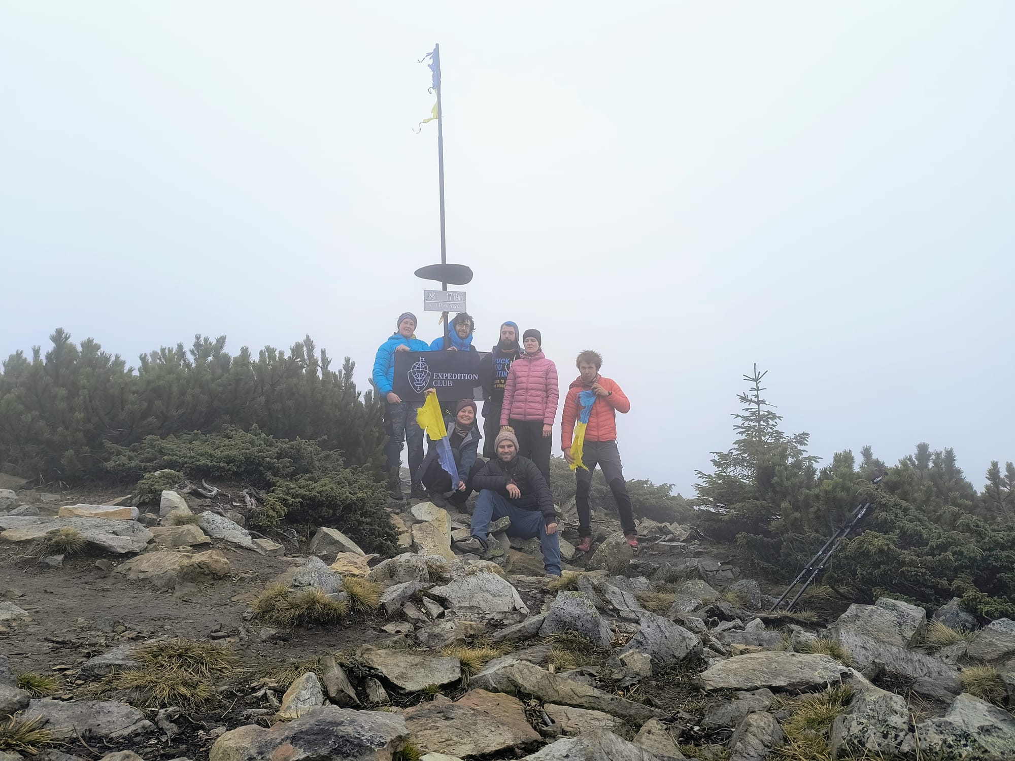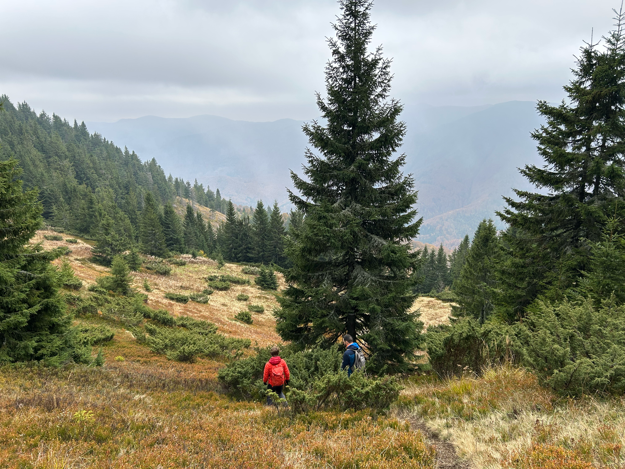 A pak již vycházíme vstříc vrcholkům hor. Tento pohodový (jak pro koho!) jednodenní výlet bereme naprosto vážně a tak se nikde neflákáme. Solidním tempem se kloužeme vzhůru vstříc vrcholu Strimby, jedné z dominant místního panoramatu. Úvodní babí léto střídá lezavá mlha a vítr jak na skotské vysočině. Na vrcholu tedy moc neotálíme, rychle doplníme energii (někdo čajem či tyčinkou, někdo pivem), střihneme pár vrcholových fotek, a pelášíme dolů najít příjemnější místo pro obědovou svačinku. Po výstupu ze skotského podnebného pásma se pak opět kocháme pohledy na podzimní zalesněné stráně a kopce hrající barvami. Dole ve vesnici nás pak provází čeština na každém rohu. Ne nadarmo zde před válkou bývali Češi nejpočetnější turistickou skupinou. Závěrem ještě prozkoumáme skanzen, kde bohužel nenacházíme žádné další vycpané exponáty, nicméně potkáváme první zmínky o jistém panu Banderovi, s nímž se později seznámíme blíže, než jsme si vůbec představovali.