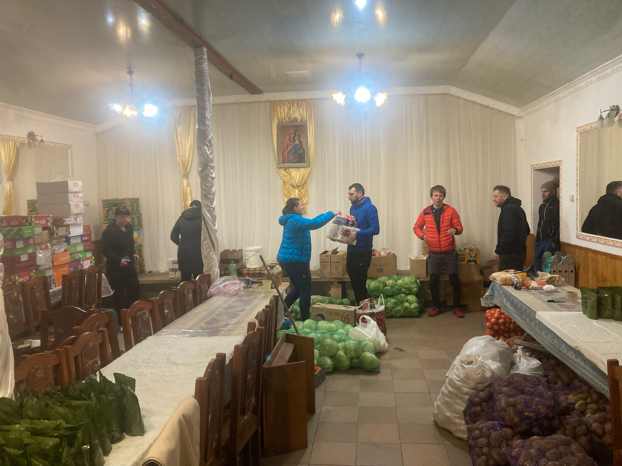 Ráno zahajujeme krátkou zajížďkou za jedním z hlavních důvodů, proč jsme sem přijeli. Za doprovodu našeho domácího Oleše vezeme příspěvek do místní polní kuchyně ve formě trvanlivých potravin. Paní Taťána s přítelkyněmi z vesnice se zde pravidelně scházejí a vaří trvanlivá jídla, která pak posílají na frontu Zakarpatské brigádě. Provázejí nás dočasnou polní kuchyní a přilehlým sálem. “Dříve se tu pořádaly svatby, ale teď žádné nejsou…” komentuje Oleš rozlehlý sál, kterým se line vůně kvašeného zelí a stoly lemují vyrovnané řady zelených balíčků. Jelení ragú od vaší oblíbené značky outdoor jídla v nich sice není, jejich obsah je však jistě neméně výživný. To vše díky místním dobrovolníkům a finanční i materiální pomoci z mnohých sbírek. Cestou do hor pak navštěvujeme také památník padlým vojákům z Koločavy před základní školou. Obě ranní návštěvy tak dávají připomenout, že i když na Koločavu ruské drony a rakety nedoletí, i oni tady jsou součástí války trvající už přes 10 let.