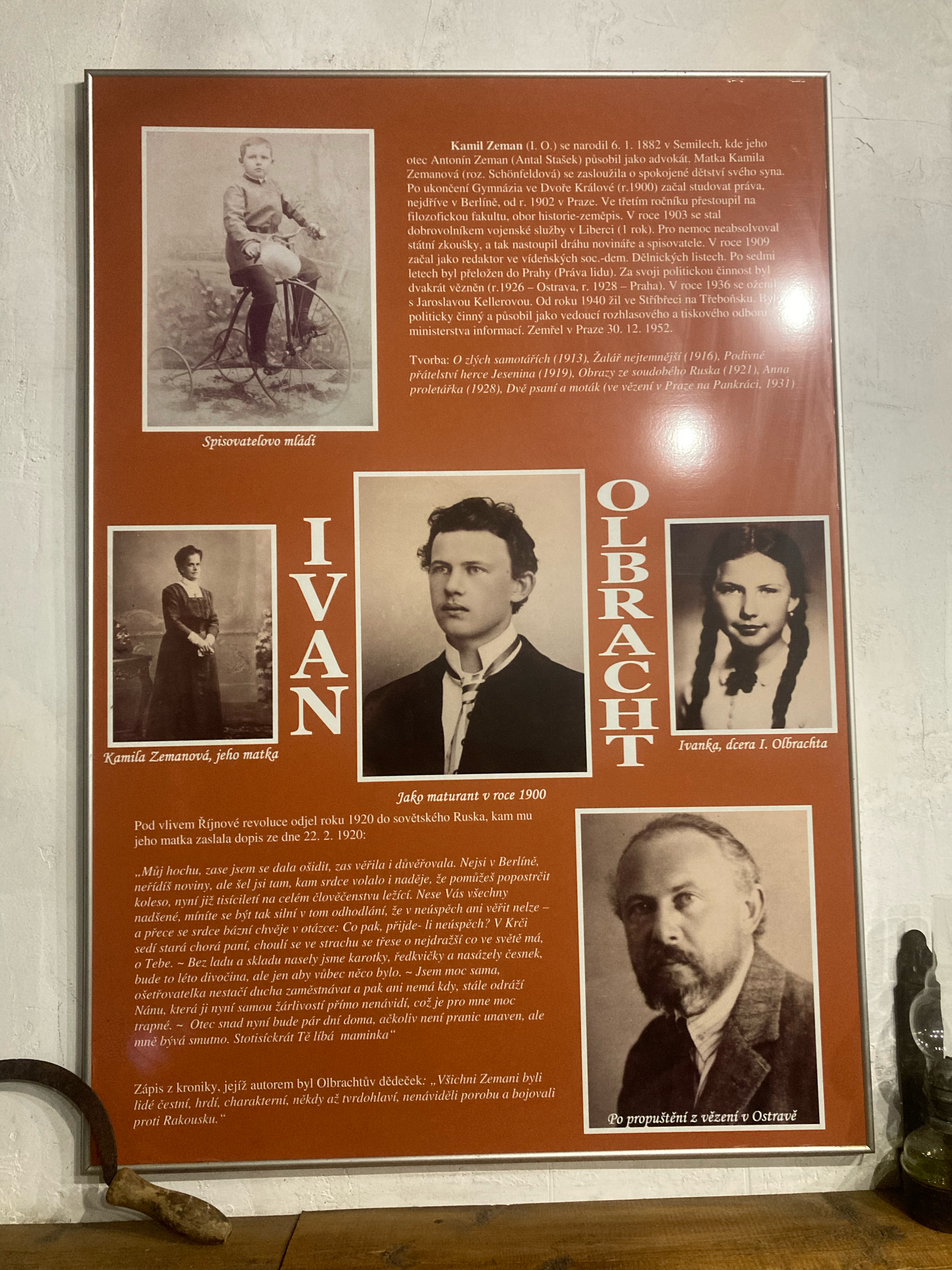 Už nutnost sehnat průvodkyni po telefonu, aby nám dorazila otevřít nenápadný domeček v centru Starého Uhrinivu, nás měla varovat. My se však nenechali odradit deštěm ani čekáním a tak se nám po krátkém úvodu do nábytkového inventáře muzea (tady všude byl… tady seděl!) dostává zapáleného výkladu o osudech rodiny a dětství této kontroverzní osobnosti dějin první poloviny 20. století - pro Ukrajince (především ty západní) hrdina boje o svobodný stát, oslavovaný pomníky a vlajkami, pro jiné národy radikální nacionalista a terorista. O hlavních činech jeho života a především celkovém historickém kontextu se toho dozvídáme jen poskrovnu, což jen podtrhuje lehkou bizarnost celé situace. Paní průvodkyně z nás ale byla tak nadšená, že se nenechala zviklat ani tím, že jí vlastně moc nerozumíme a tváříme se trochu rozpačitě.